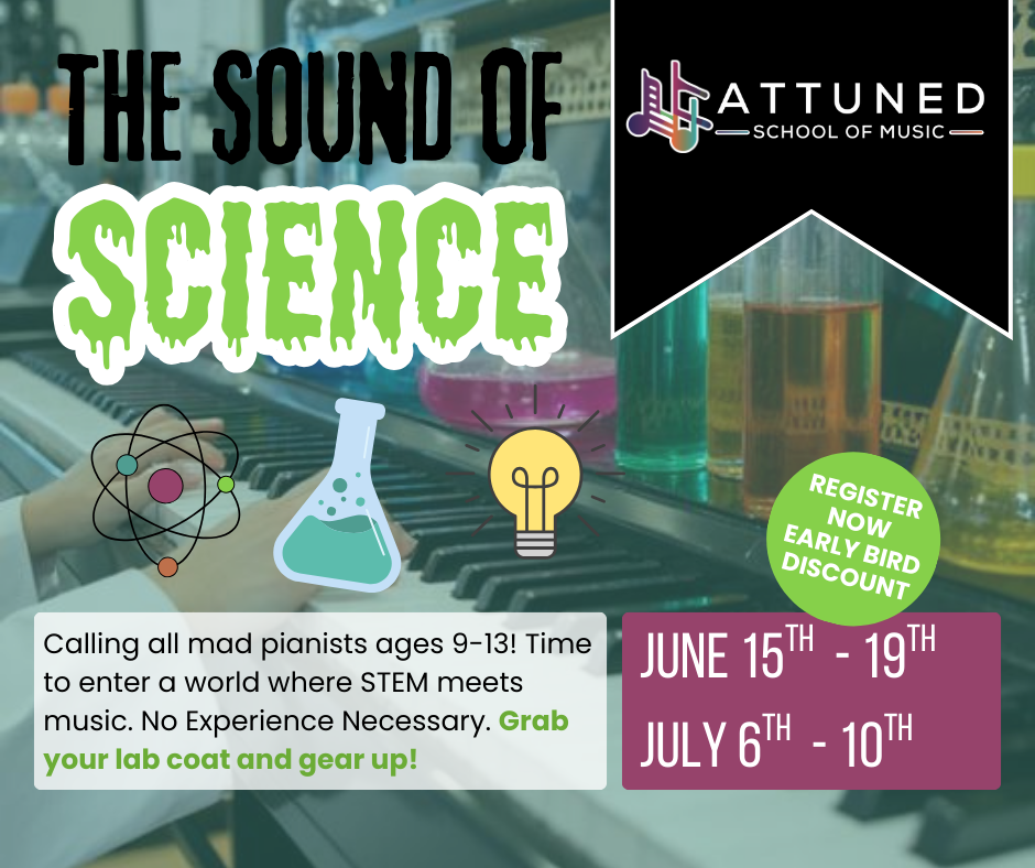The Sound of Science is a hands-on STEM piano camp for ages 9–13 that explores the fascinating connection between music and science. Campers will discover how sound is created, how vibrations travel, and how patterns and math shape the music we play—all through interactive piano activities, experiments, and creative challenges.