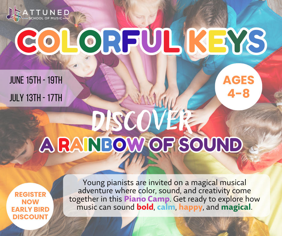 Each day focuses on a different “color of music,” helping children build confidence at the piano while expressing themselves through sound and creativity.